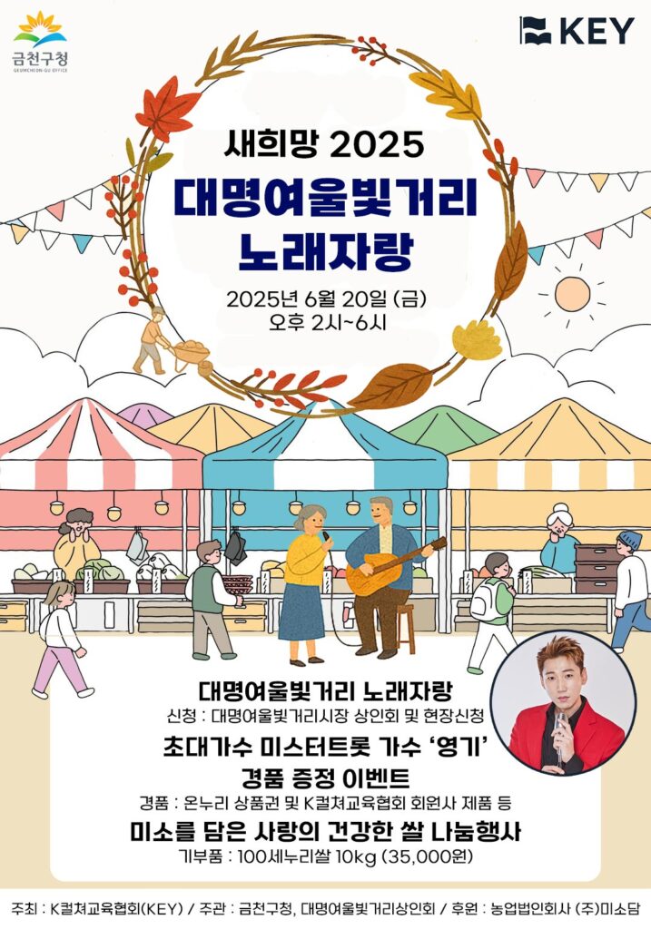 [공감신문] 신선미 기자=K컬쳐교육협회(대표 이상준)가 주최하고 금천구청과 대명여울빛거리상인회가 주관한 ‘2025 대명여울빛거리 노래자랑’이 지난 20일 금천구 대명여울빛거리시장에서 성황리에 개최됐다.
